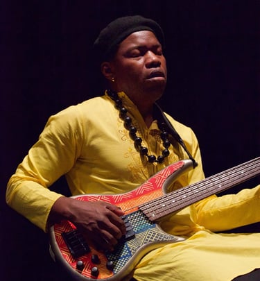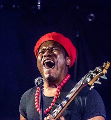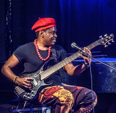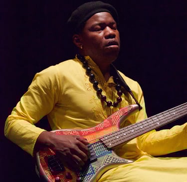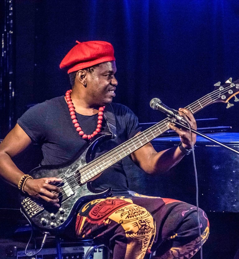 Just Wôan, a Cameroonian singer, bassist, and multi-instrumentalist, carries a voice of remarkable range and depth, effortlessly moving between resonant low tones and luminous high notes. His musical journey has taken him to major international stages including the Montreux Jazz Festival, Blue Note Tokyo, and the Montreal International Jazz Festival, where his artistry has been praised for its emotional power and originality.