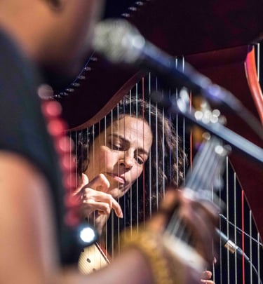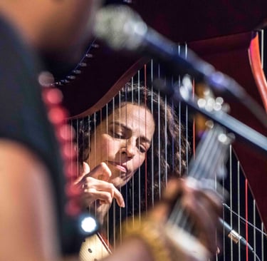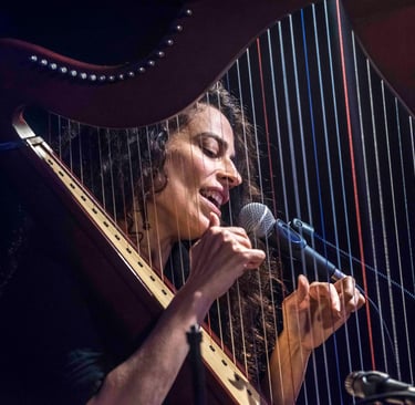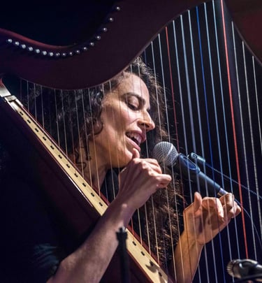 Kamila Nasr, a Canadian harpist, singer and multi-instrumentalist of Afghan heritage, brings a gentle, velvety voice and a refined musical sensibility shaped by years of artistic life across Brazil, China, and Canada. She has performed in stadiums and festivals across China with China’s biggest rock and progressive rock artists. Her harp playing weaves luminous, flowing textures that invite contemplation and trance.