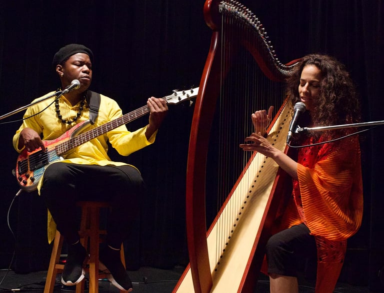 Together, Ikoum creates an intimate and immersive musical experience, blending world jazz, poetic song with African, Eastern and Latin influences. Sung in Bafia, English, and Dari (Afghan language), their music transcends borders and speaks directly to the senses.